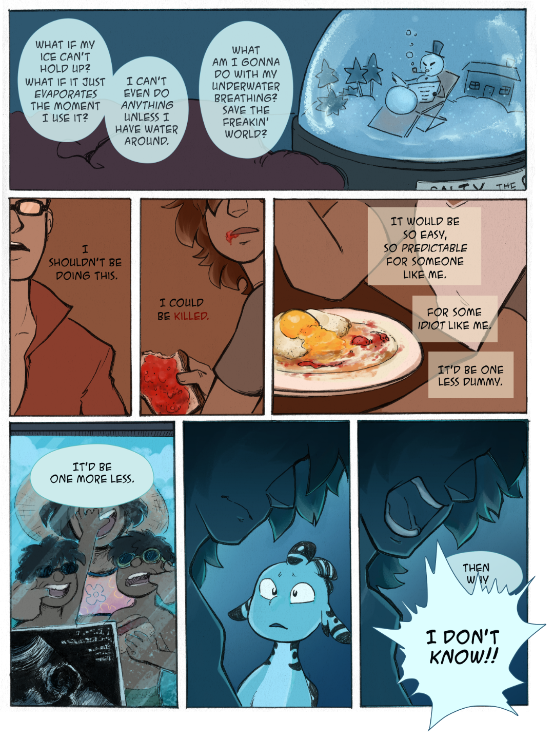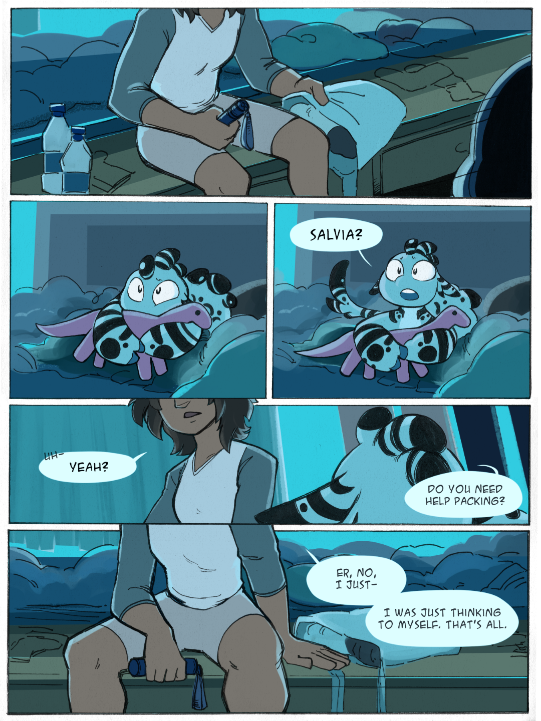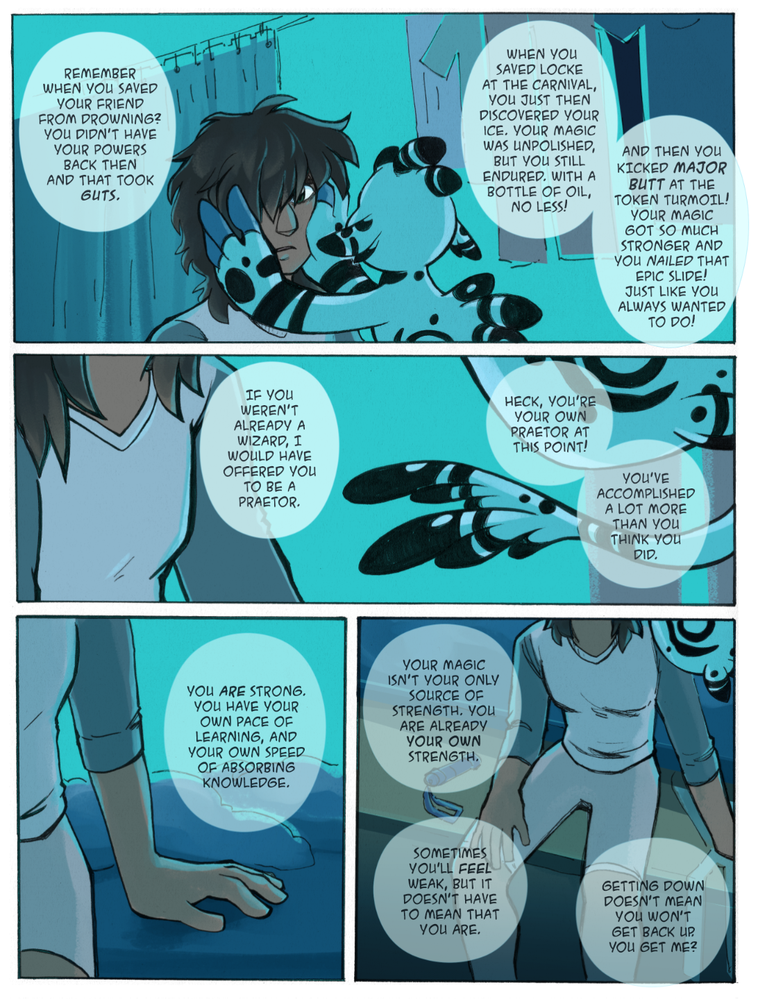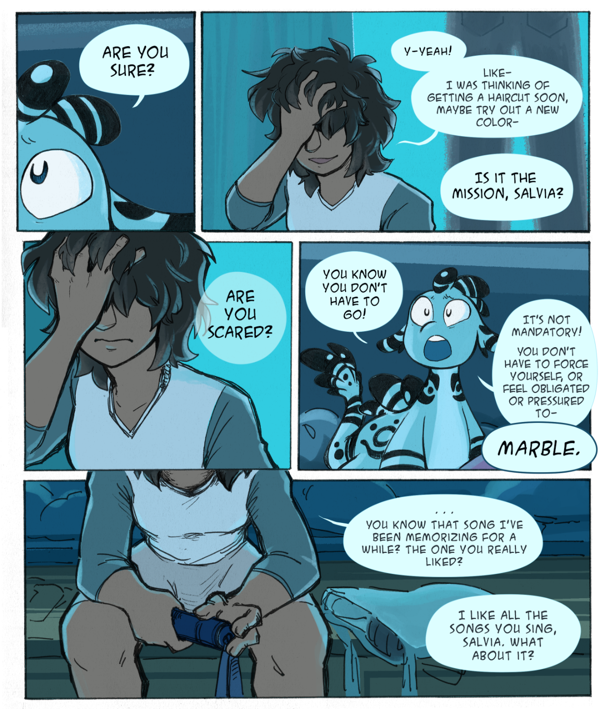 Dulcedomum-Redux was a DnD-inspired community revolving magic wielders, mystical spirits, and duties to uphold the natural balance of the world. Salvia Hernandez—a spirited but anxious wizard teetering between carefree youth and bitter adulthood—prepares for a dangerous mission and confides in her familiar, Marble, for words of wisdom.Significant characters featured in this comic include the headmasters Aristar and Johan.
